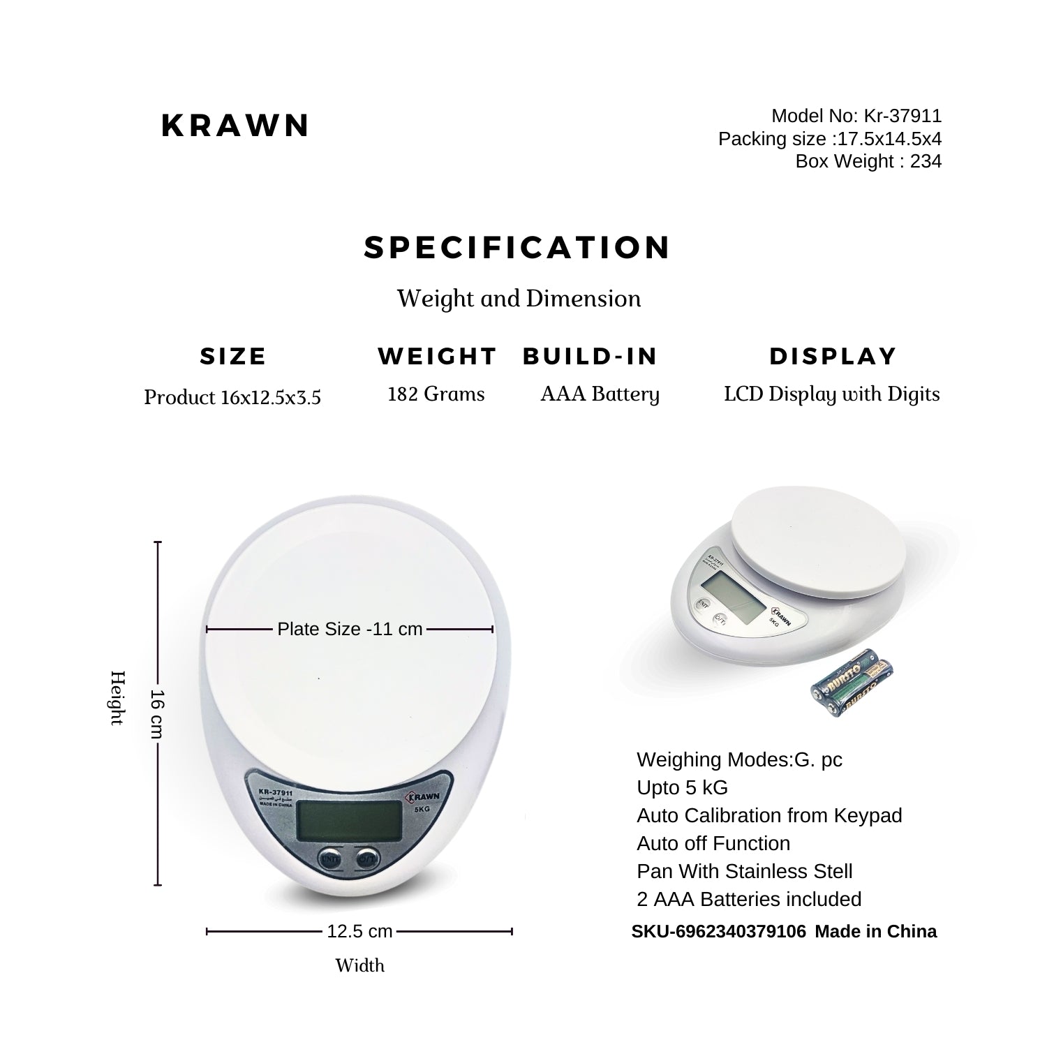 - Model: KR-37911 (KRAWN 5KG Precision)